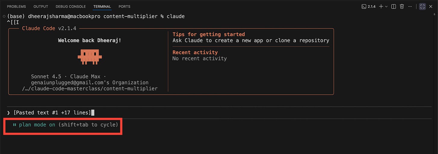 Plan Mode in Claude Code is a read-only phase used for research and planning. In this mode, Claude first understand what user is asking, then it reviews the codebase (if exist), looks through files, and builds a clear step by step plan for complex tasks without changing any code or running commands.