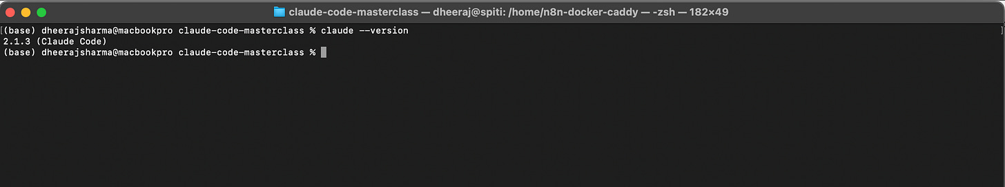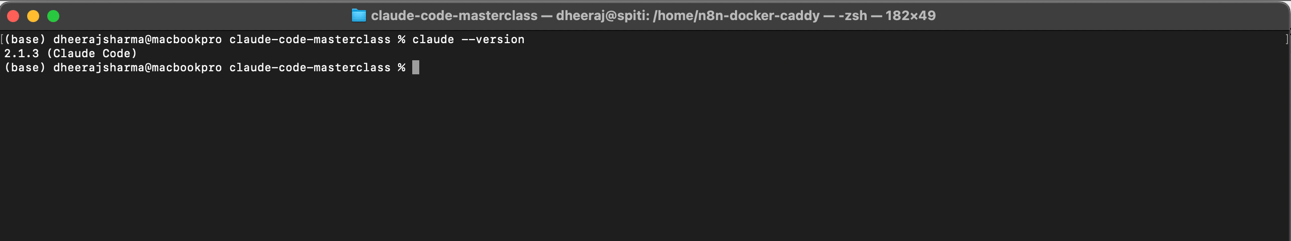 claude --versionYou should see the version number. If you get an error, restart your terminal and try again.