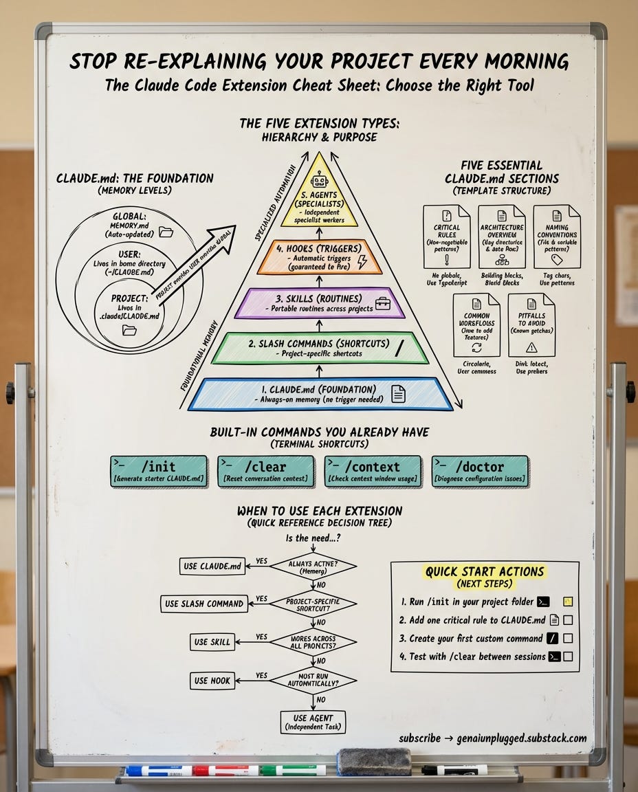 Claude Code has four extension types. Most people know one or two. The creators who get real productivity gains use all four as each one is present for its intended purpose.