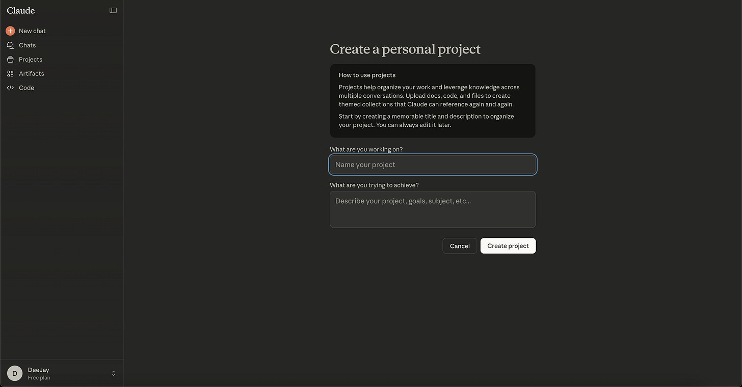 Name your Project something specific. Not “My Project” or “Assistant.” Use a name that describes the work it’ll do: