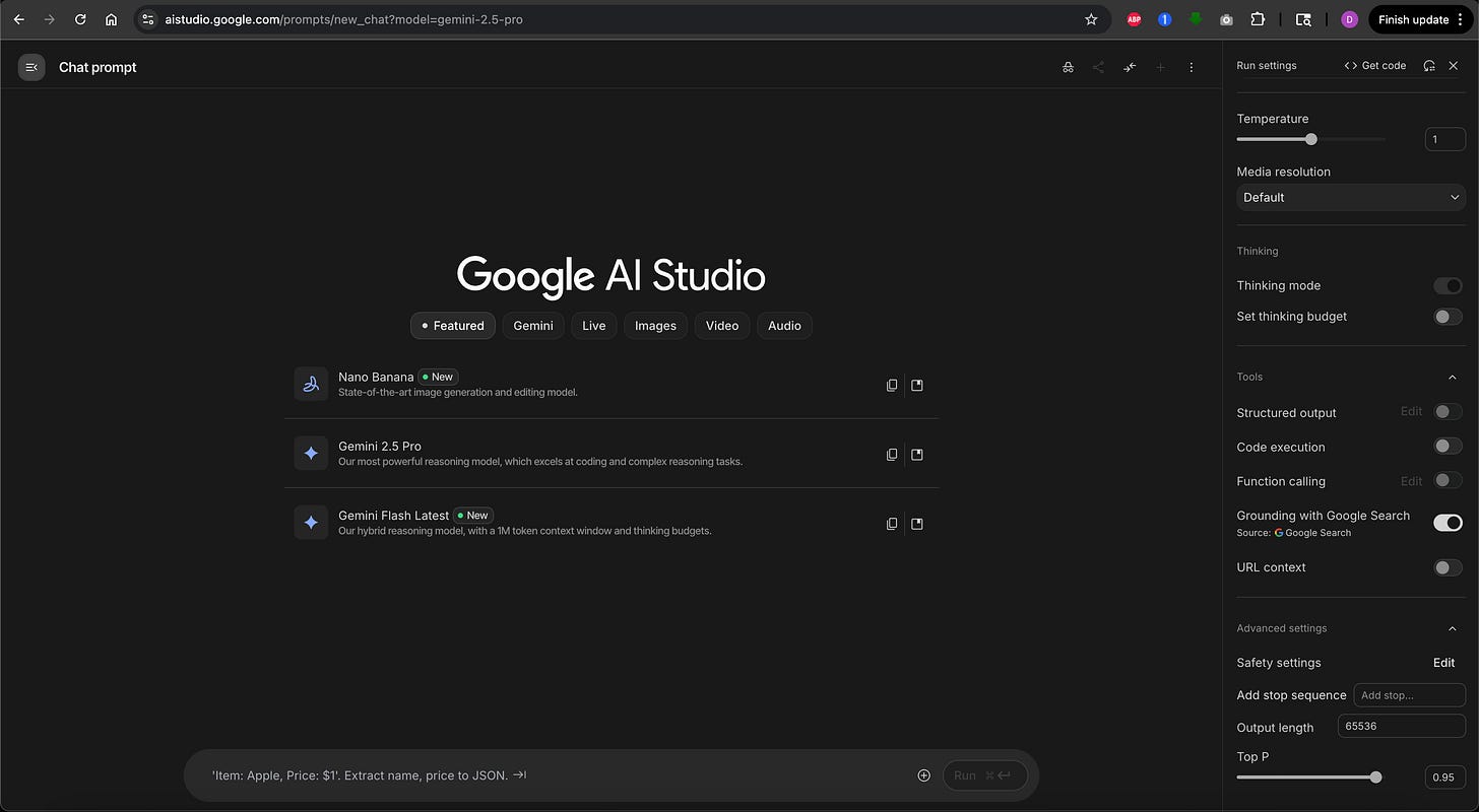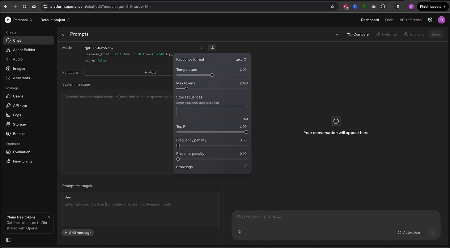 These settings are available when you use AI models through APIs or special playgrounds, not in the standard ChatGPT or Claude chat interfaces. To follow along in this lesson and play with these settings, you can access the OpenAI Playground or Google AI Studio.